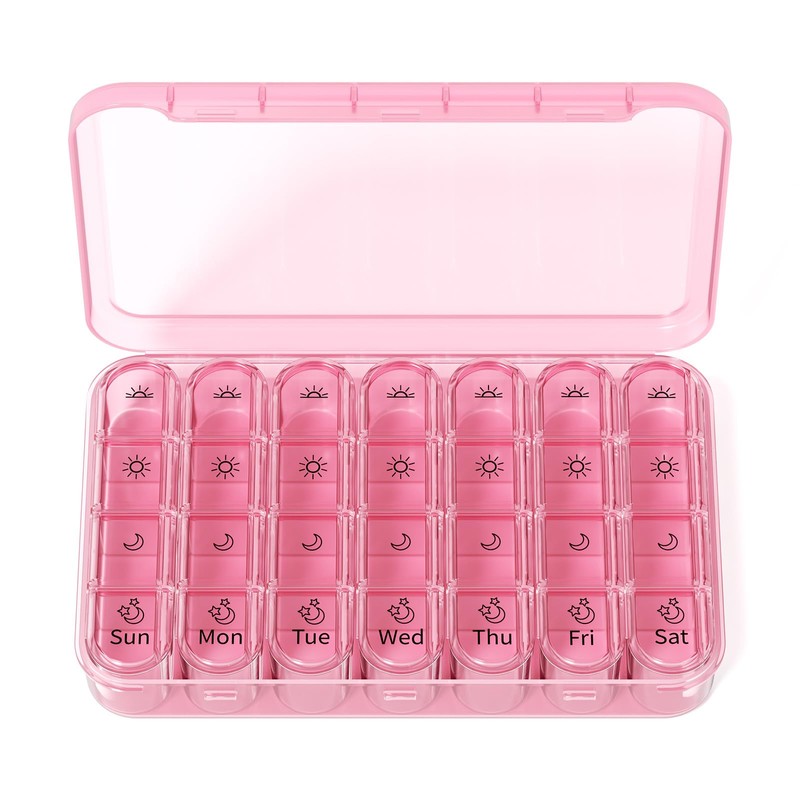 Zoksi Pill Organizer 4 Times a Day, BPA Free Weekly Travel Pill Box,Daily Pill Case with 28 Compartments to Hold Medicine, Vitamin and Supplement(Pink)