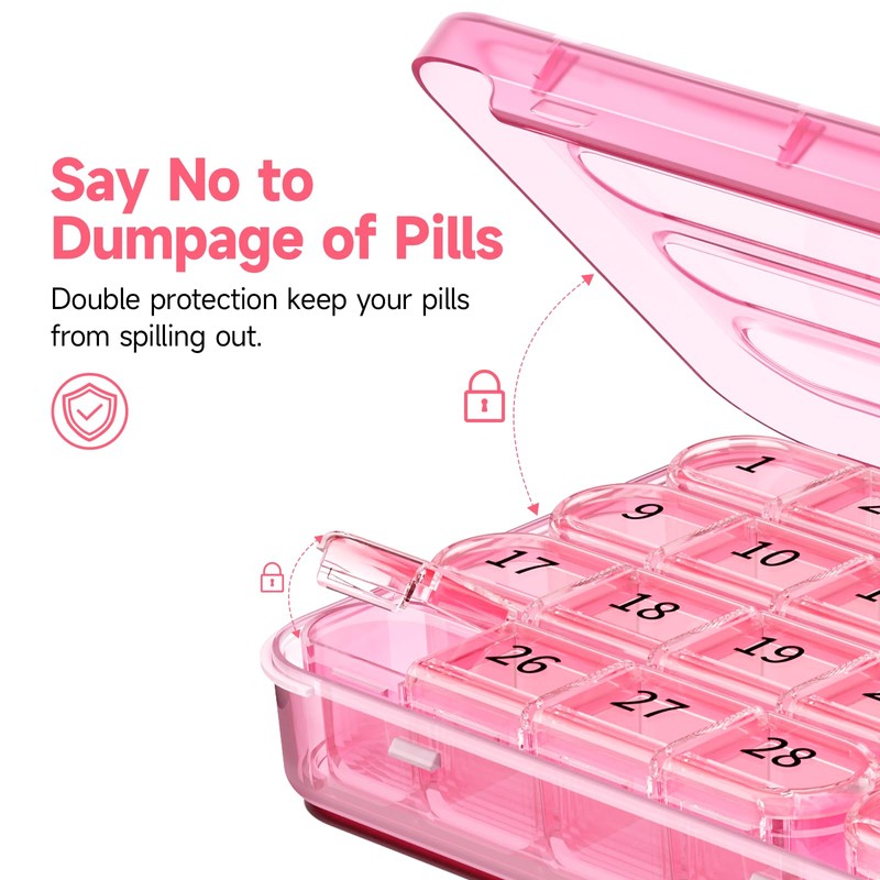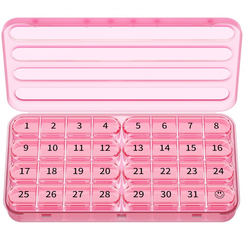 Zoksi Zoksi Monthly Pill Organizer 1 Time a Day, One Month Travel Pill Case, 30 Day Pill Box Organizer Once a Day, 31 Daily Medicine Container with Large Pill Holder, for Vitamin Supplement Medication, Pink