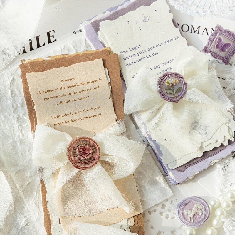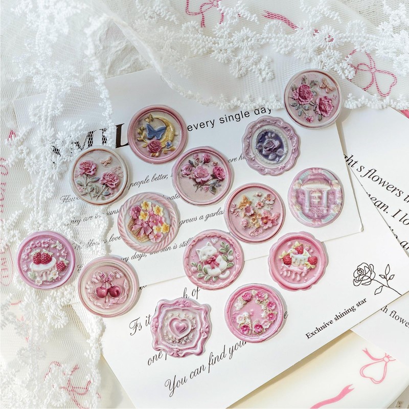 - Retro 3D Drip Sticker: The seal is a three-dimensional drip seal with a fire lacquer effect, mainly made of purple, pink, dark red, and has a rich variety of sticker materials, including flowers, kittens, ribbons, butterflies, and small bears. The overall style is gentle and refreshing, thick and comfortable to the touch. Can be used to seal envelopes, seal cards, etc
