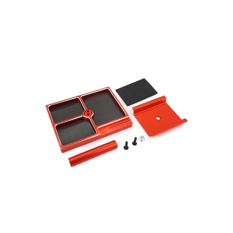 - The RC car stand come with 4-grid design facilitates the sorting of parts, preventing different parts from mixing,chassis with scale, you can measure the length of the parts.