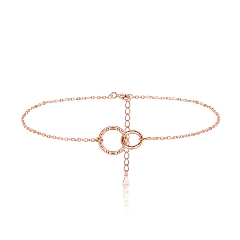 Zolkamery Silver Anklets for Women, 925 Sterling Silver Ankle Bracelet Rosegold, Fashion Waterproof Women's Anklets with Two Interlocking Eternity, Adjustable Summer Beach Barefoot Ankle Bracelets
