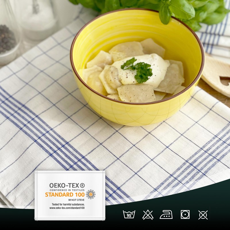- Care: The tea towels are particularly easy to care for, can be washed at 95°C and are suitable for tumble drying. Even after frequent washing, the dishcloths do not lose material strength and remain highly absorbent.