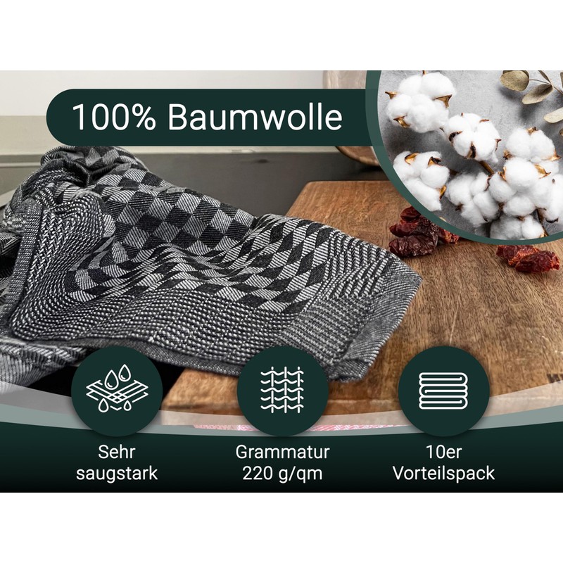 CLASSIC YET MODERN - These gorgeous checkered pattern tea towels come in a handy pack of 10. So that you can find the right colour for your kitchen, the drying towels are available in many different colours. They have a size of 46 x 70 cm and are equipped with a hanger.