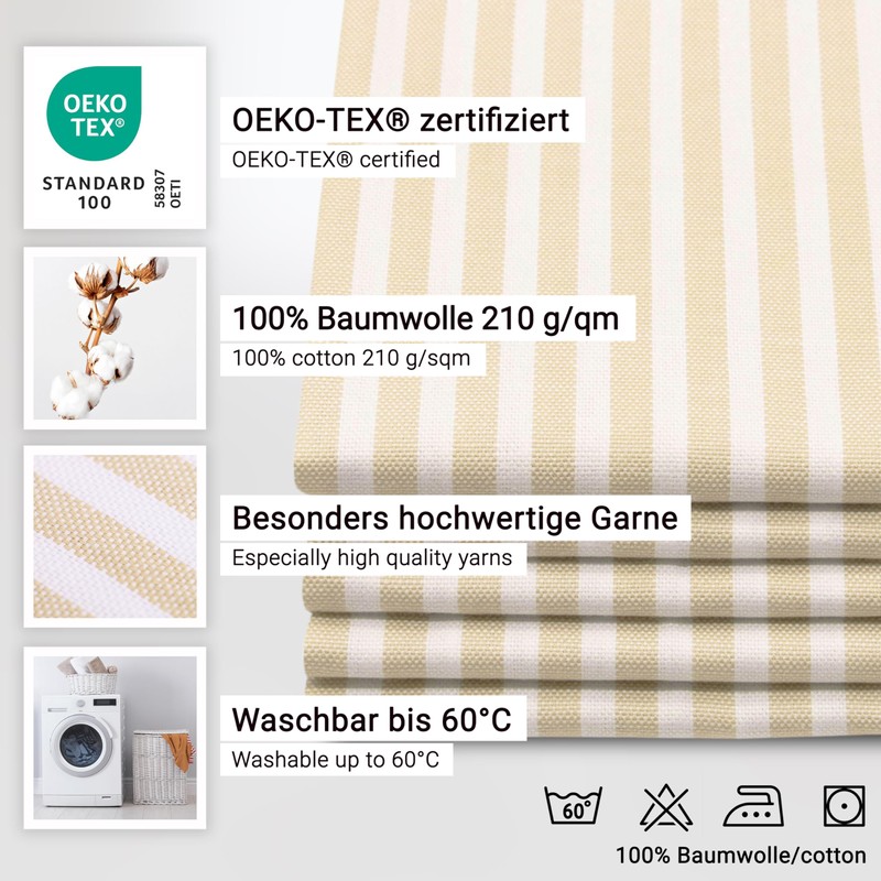 The kitchen towel made of pure cotton has a weight of approx. 215 g/m², making it particularly absorbent and durable. Cotton has high water absorption capacity to ensure a quick and streak-free drying of dishes and cutlery and spilled liquids are wiped up in an instant.
