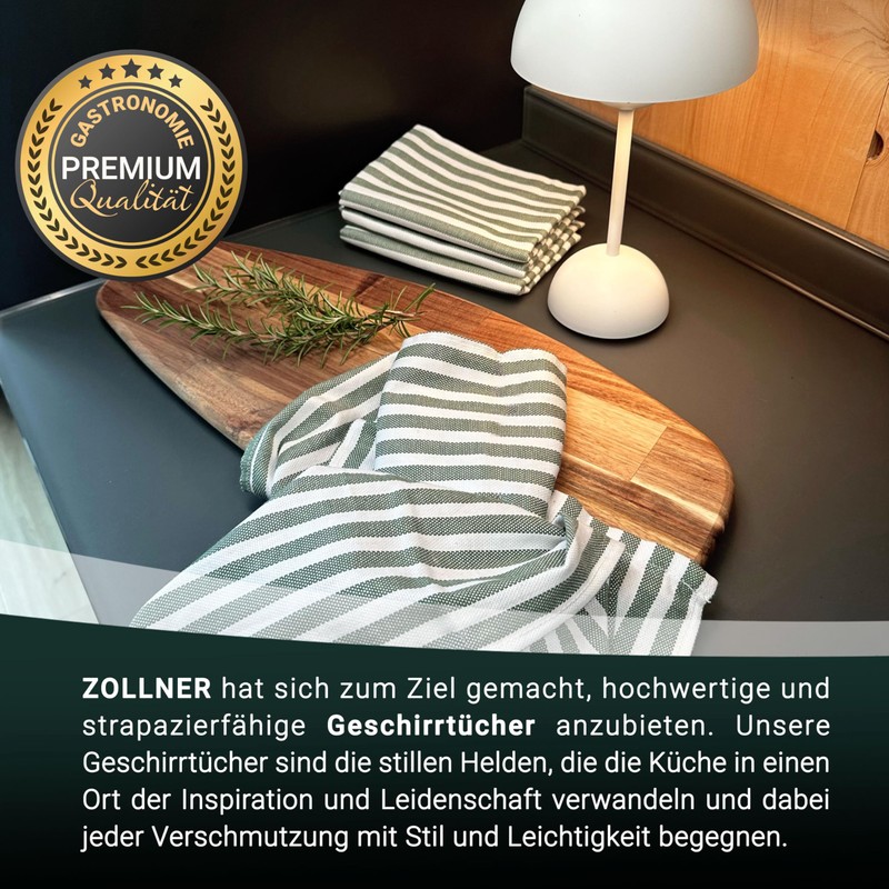 Advantages of the kitchen towel set by Zollner:Best quality: 100% cotton, absorbent and lint-free.