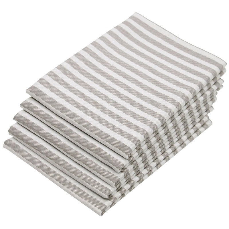 • The simple and elegant stripes of the glass towels ensure a timelessly beautiful look and brighten up any kitchen. The towels are available in the fashionable colours beige, blue and grey. The set of 5 is also great as a rustic table mat.