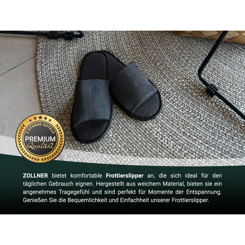 - Versatile – with our terry shoes, every step becomes a feel-good experience. Perfect for the sauna, as guest slippers or as slippers. Lightweight and space-saving, the terry shoes also fit effortlessly into any luggage.
