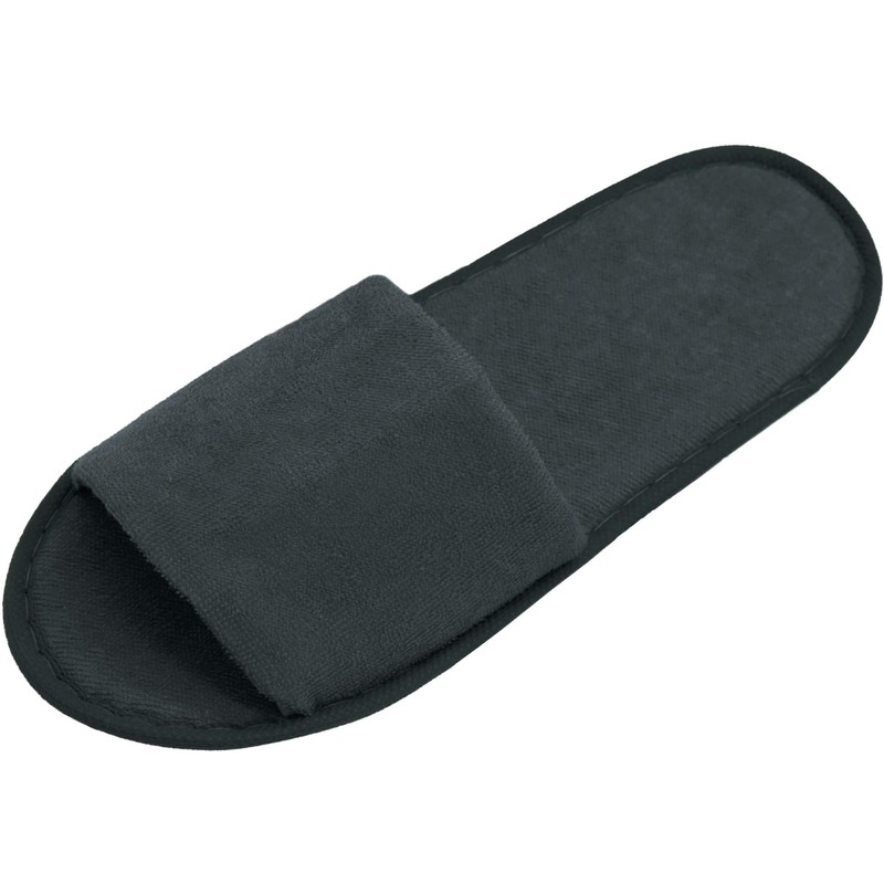 ZOLLNER Disposable guest slippers with open toe - terry slippers for travel, spa, sauna and home - non-slip sole - one size fits all - hotel quality, 003, darkgray