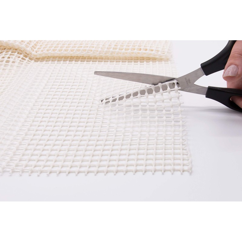 No more slipping rugs around the house. Secure your home with the practical non-slip mat. Super easy to use, even small parts of the mat hold large rugs in place. You can easily cut the practical mesh fabric with scissors and place it under the carpet. Also ideal under bath rugs, shoe scrapers, dog beds or as an insert in a drawer. The robust PVC fabric is also suitable for floors with underfloor heating.