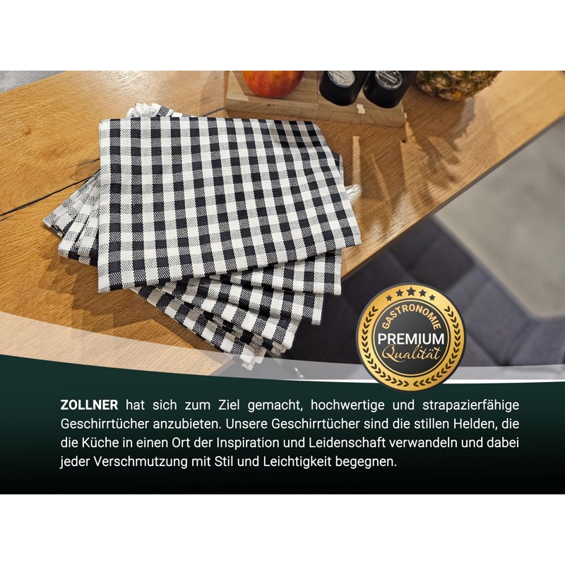 ZOLLNER Set of 5 Tea Towels with Checked Pattern, 100% Cotton, Black