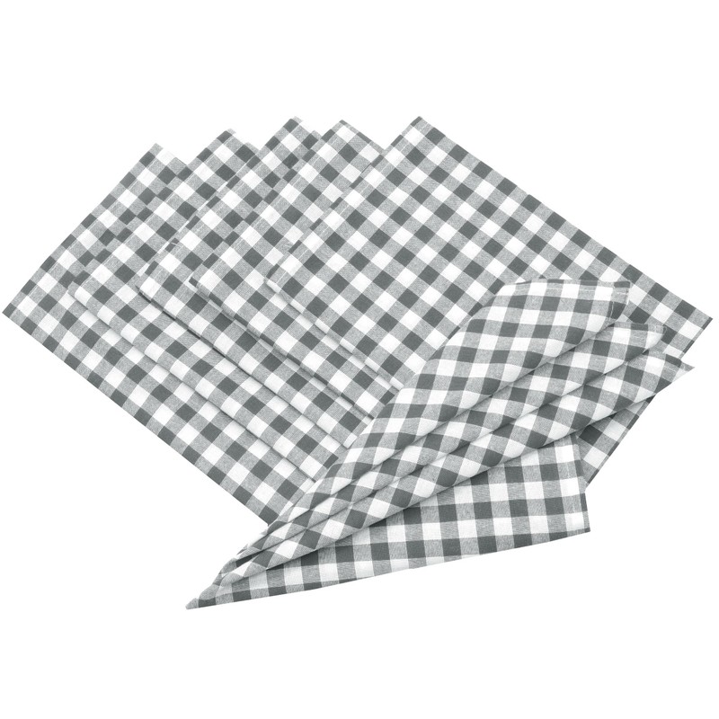 - The reusable table napkins have a classic check pattern in grey and white and have been dyed throughout.