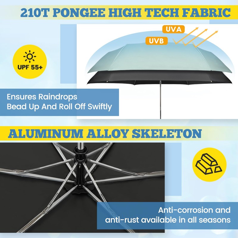 - Ultra Lightweight Portable Parasol: The one-touch automatic opening and closing parasol features excellent functionality and a stylish design. The compact size makes it easy to store in your bag or pocket, convenient for travel or commute. The 230g lightweight design makes it comfortable to use even for long periods of time without fatigue