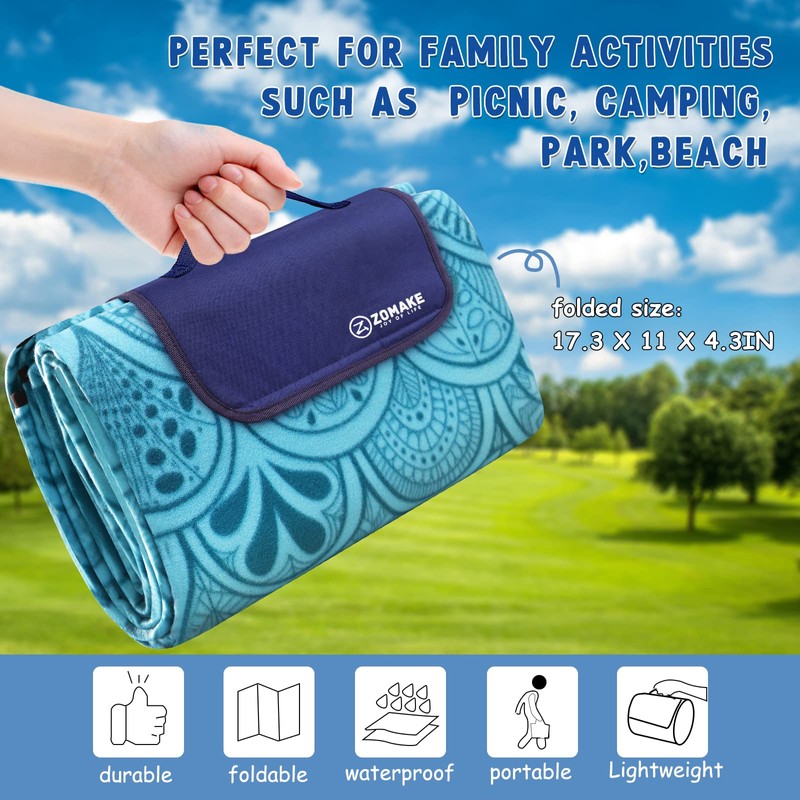 ZOMAKE ZOMAKE Picnic Blanket - Waterproof, Foldable, Sandproof - 79"x79" Concert, Beach, Yard, Outdoor Grass Blanket - Large (Peacock Blue)