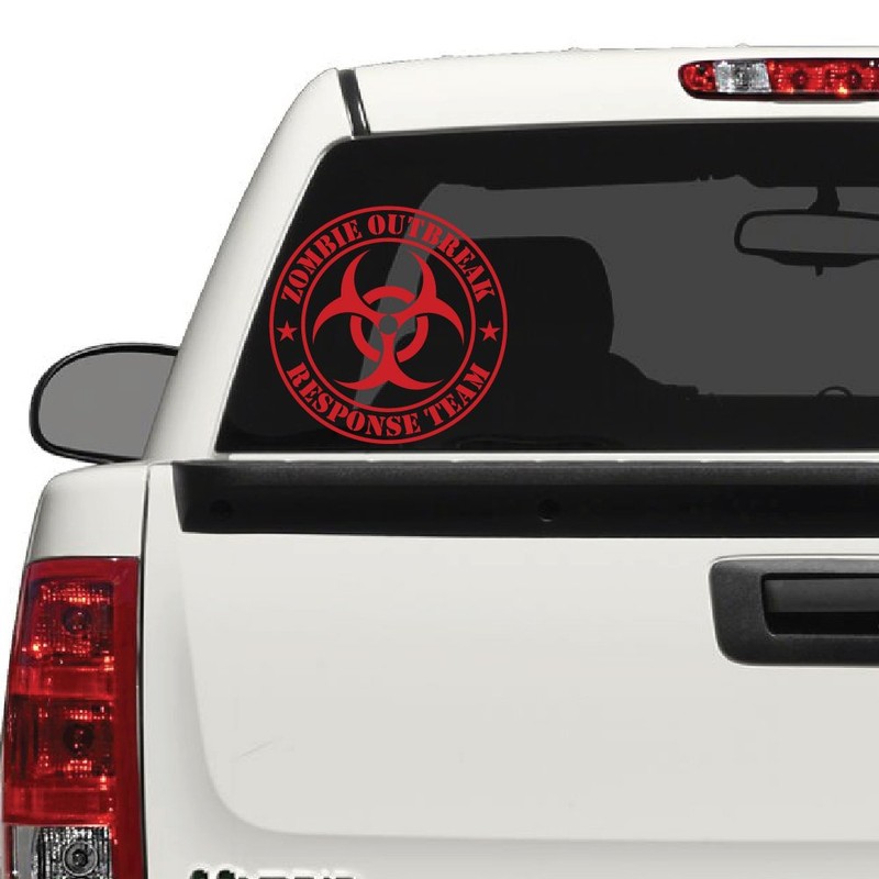 Zombie Outbreak Response Team Decal Sticker for Car Window, Laptop and More. # 555 (12" x 12", Red)