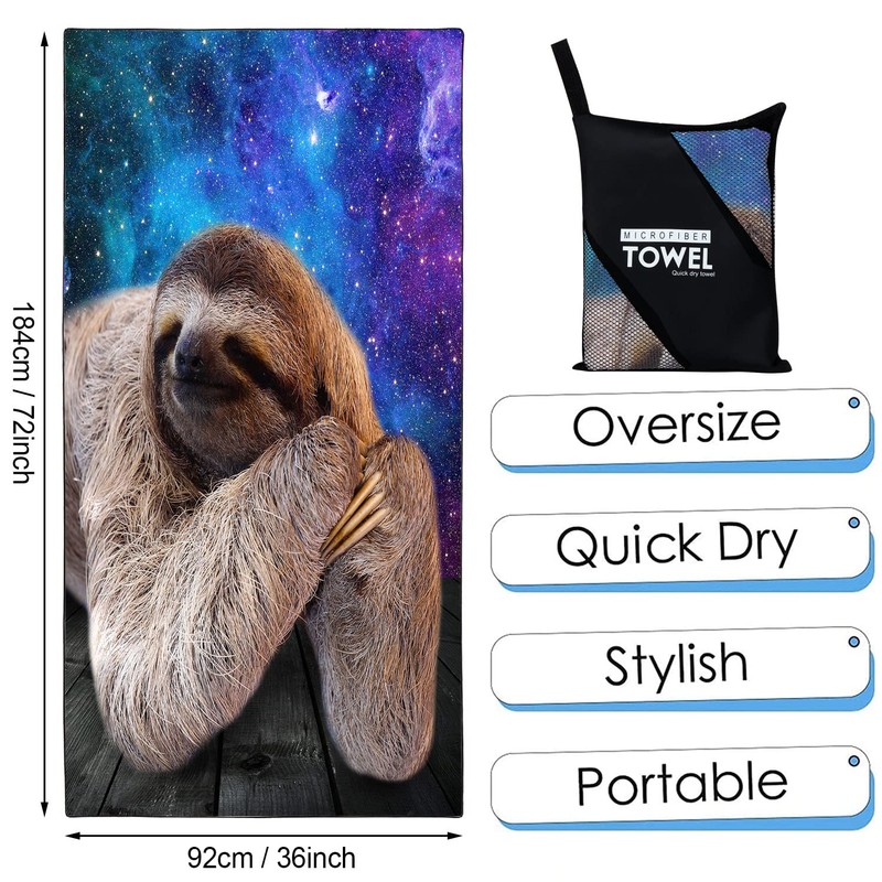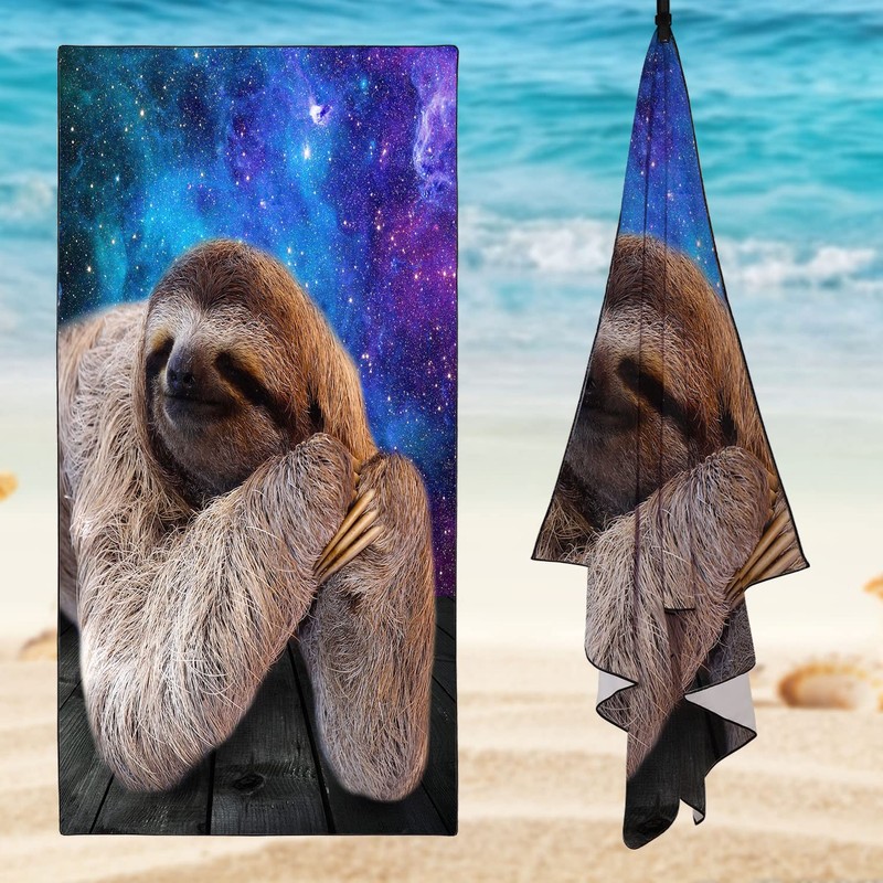 Zomer Beach Towel Large 90 x 180 cm Quick-Drying Microfibre Printed with Galactic Sloth Motif