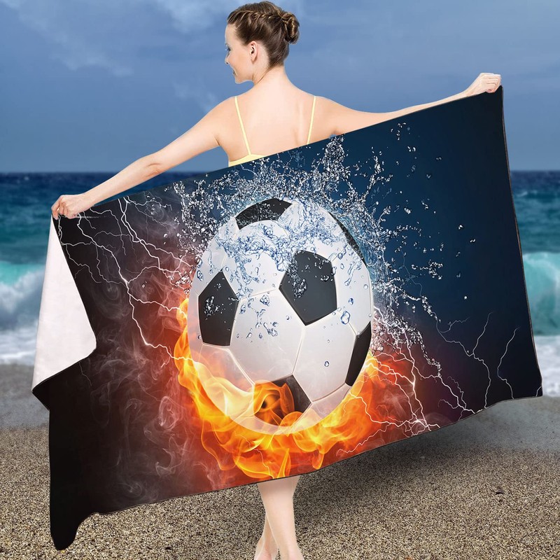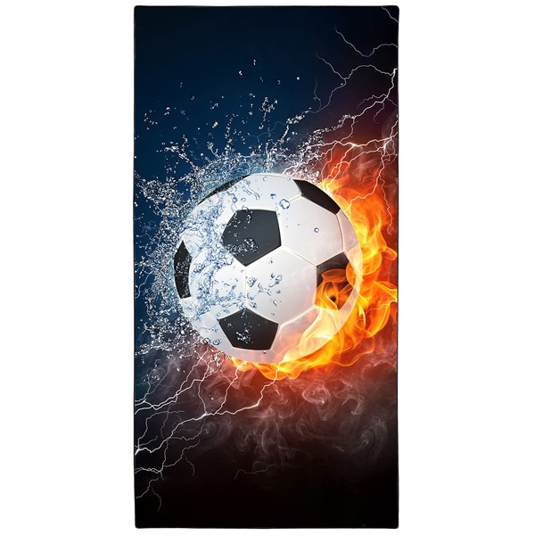 Zomer Beach Towel Large 90 x 180 cm Quick-Drying Microfibre Printed with Ice Fire Football Motif