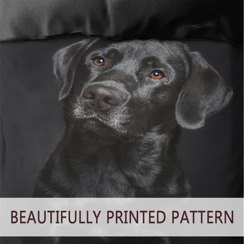 Zomer - Dog Bed Linen 135 x 200 cm Black Labrador Microfibre Printed Bedding Sets 2-Piece - 1 Fluffy Duvet Cover and 1 Pillowcase 80 x 80 cm