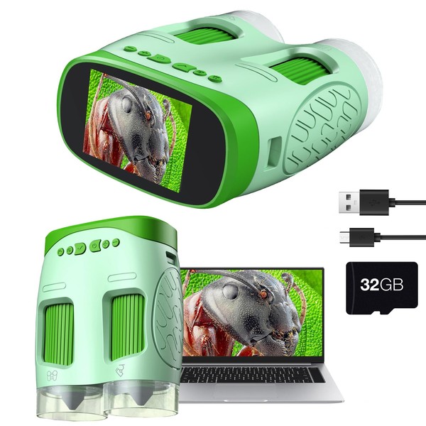 ZOMFOM Electronic Microscope for Kids, 3-in-1 2" LCD Screen Handheld 800X Microscope Telescope with Video Digital Camera, USB Connect to PC, 32GB Memory Card Included