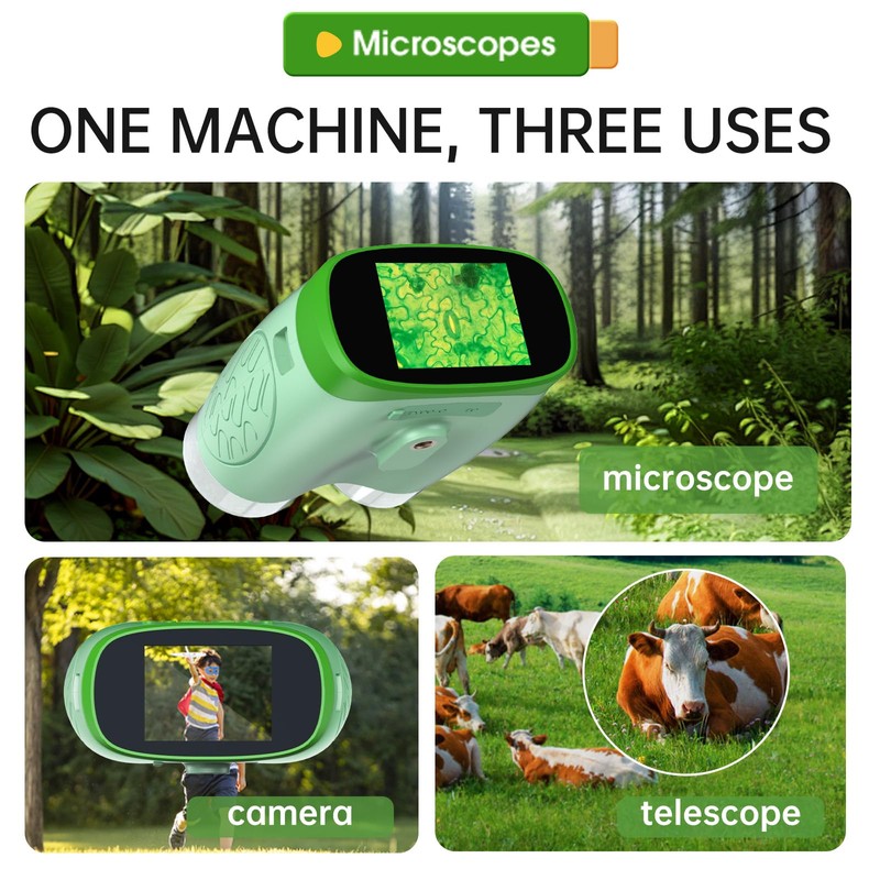 • 【3-IN-1 Multi-function Kids Explore Learning Assistant】 Collect with electronic microscope, electronic telescope and digital camera function, equipped with a 2 inch HD screen, more scientific using, let your children's eyes not easy to fatigue, care about children's eyesight.