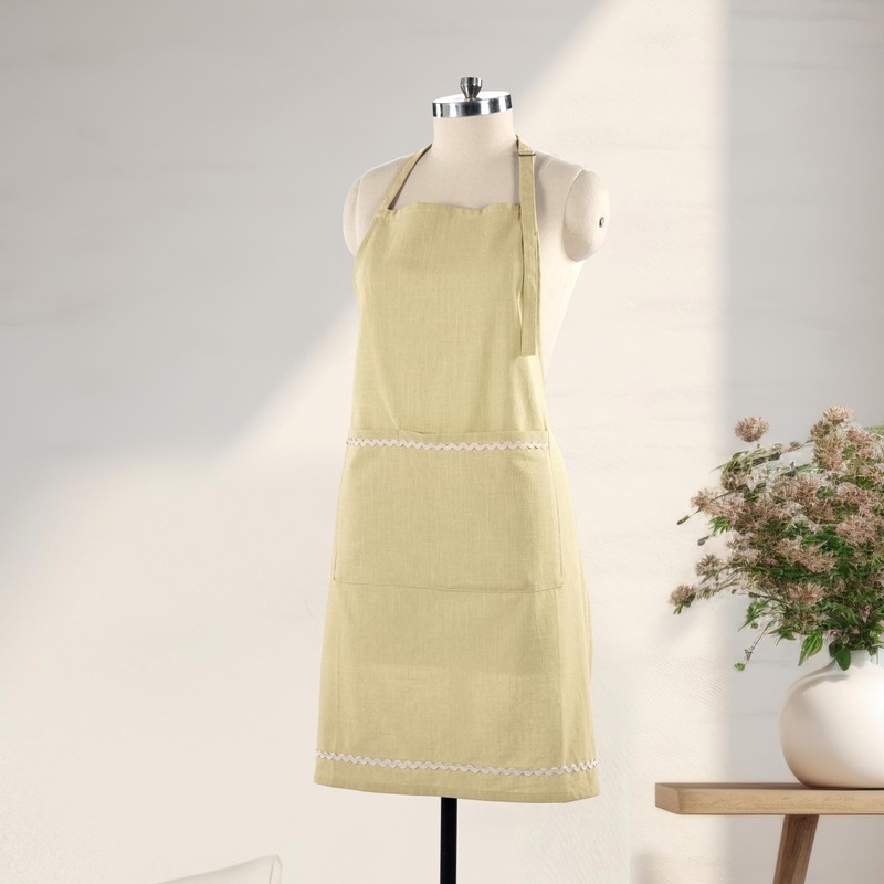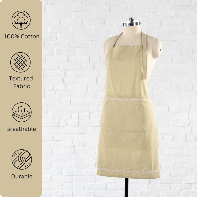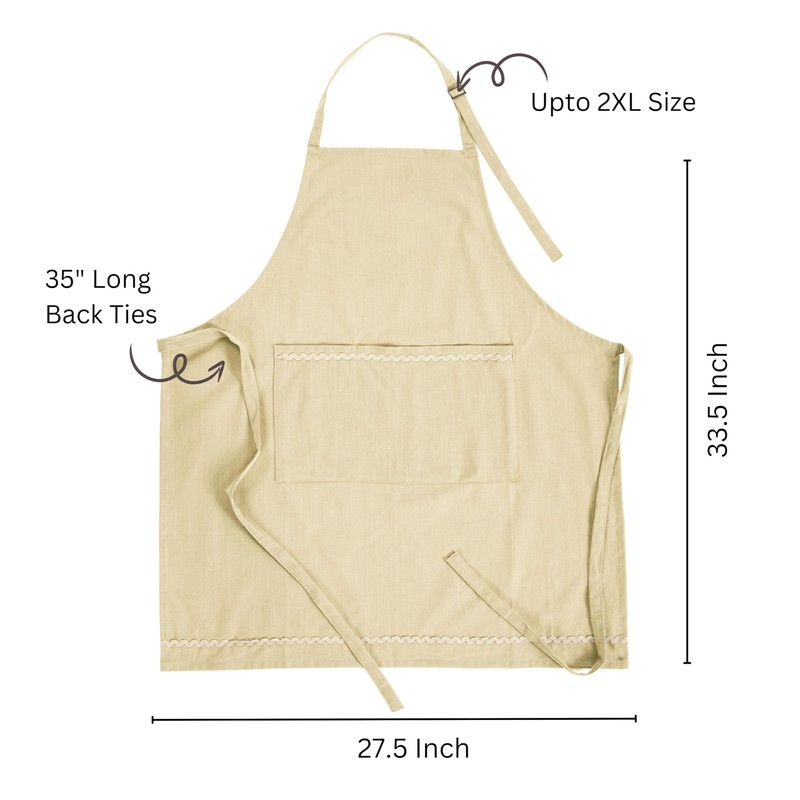 ZOMI 100% Cotton Adjustable Kitchen Apron Cloth | Eco-Friendly, Stylish with Pockets | Unisex, Machine Washable, Multipurpose, Beige, One Size Fits All