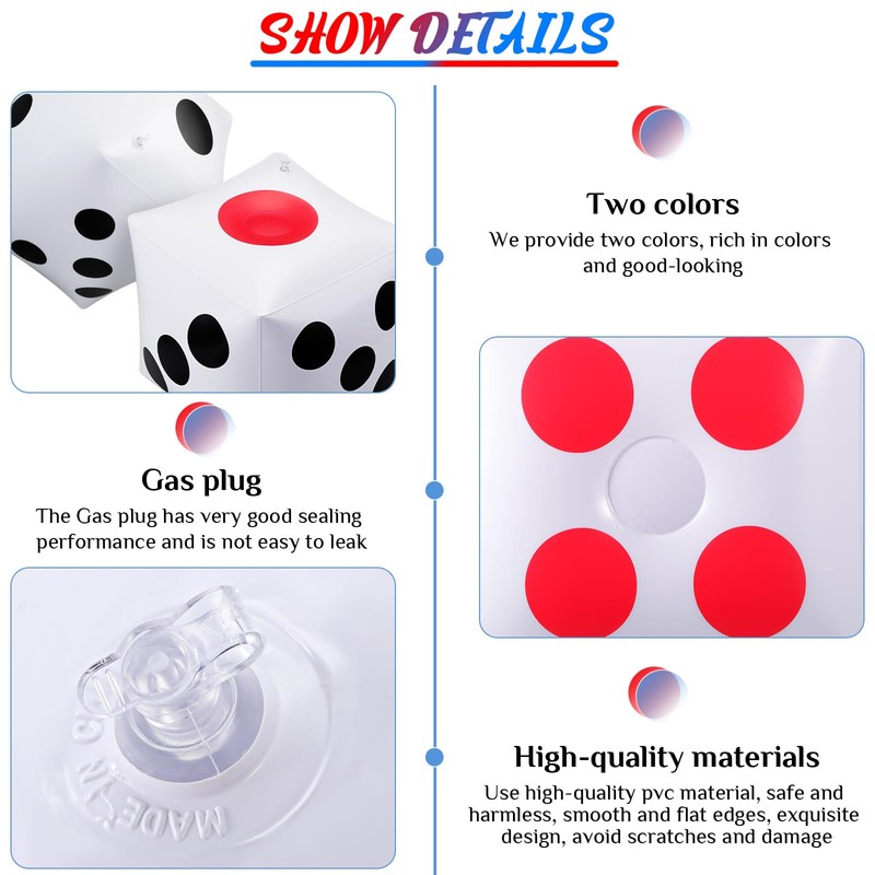 - Beautiful material: these large dice sets are made of beautiful PVC material, are flexible, reliable, inflatable and not easy to leak, which will bring more joy to your party
