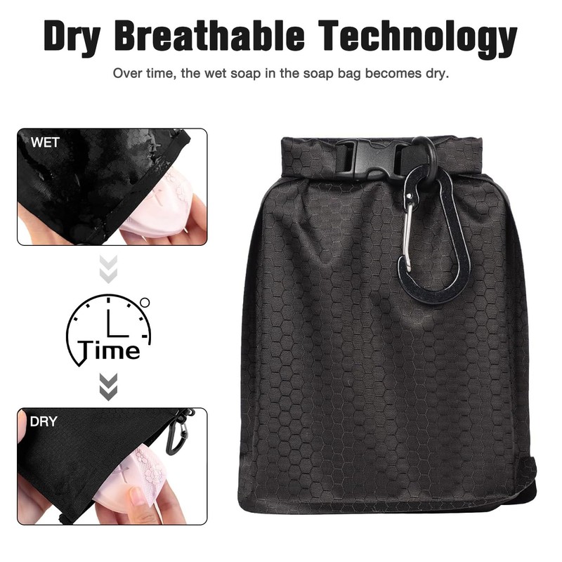 - Easy to carry: the soap bag can be flexibly folded and adjusted to the size of the soap. With the included carabiner hook, you can easily hang the bag on your suitcase or backpack and carry it with you.