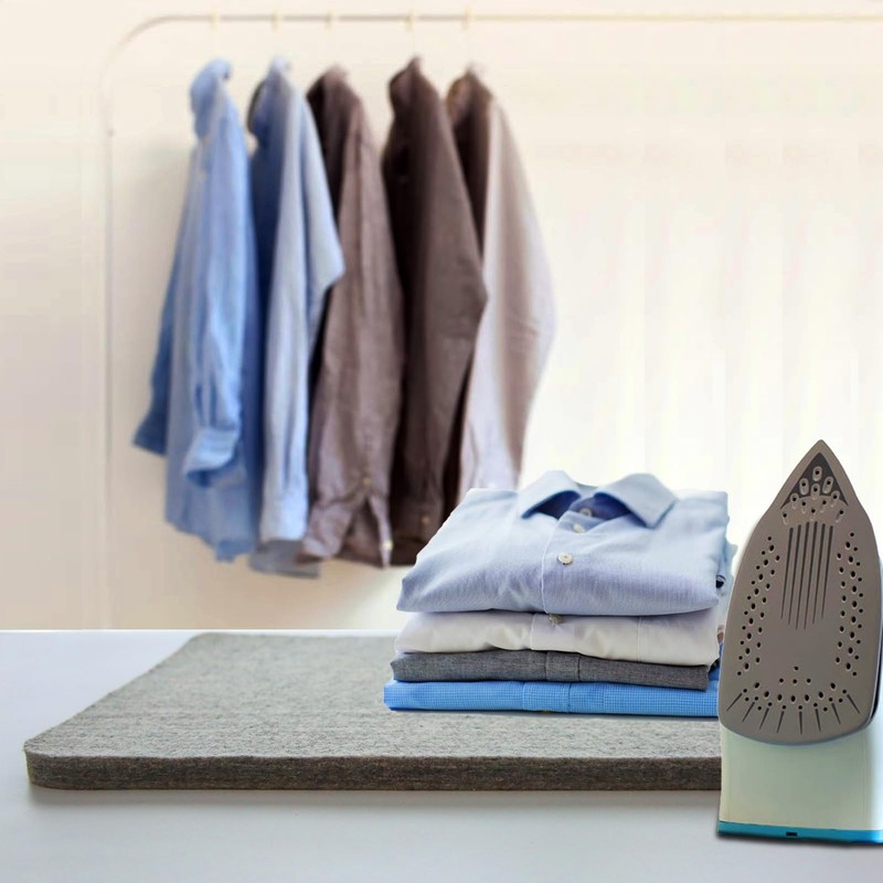 Excellent Performance:The wool ironing mat is designed to absorb heat and steam effectively, allowing the heat and steam to penetrate your fabric. This eliminates the need to turn the material around or use additional steam, as you can iron both sides simultaneously.Notes:1. Avoid leaving your iron on the wool mat for extended periods. For optimal results, set your iron to WOOL or MEDIUM HEAT.2. Always place the mat on a water-resistant surface. As wool is porous, a small amount of moisture may pass through the mat with prolonged use of steam during ironing.Care Instructions:1. To clean, simply rinse the mat in the sink or bathtub and hang it up to dry.2. Do not machine wash. When the mat is wet, simply hang it to dry.3. Avoid twisting, bending, folding, or rolling the mat. Store it flat whenever possible.4. Never store the mat when damp or wet. Ensure it is completely dry before storing.