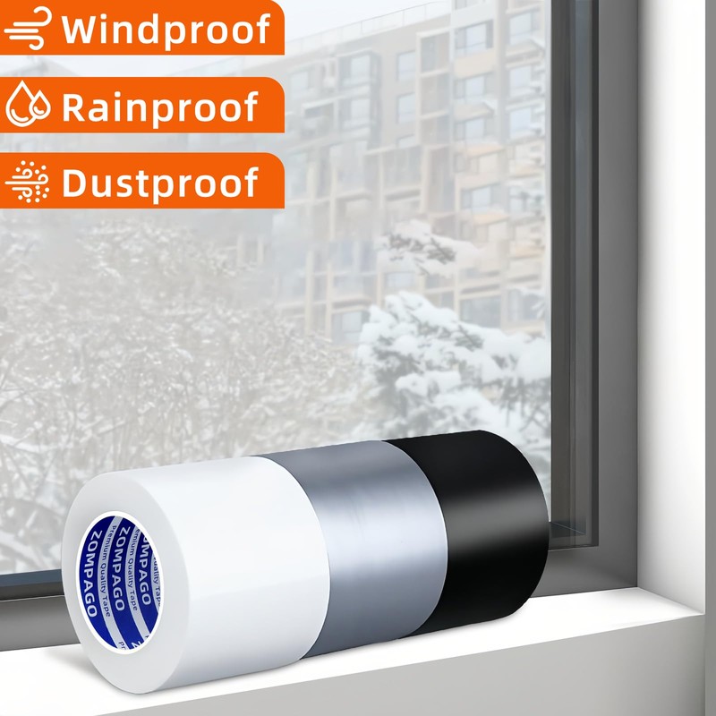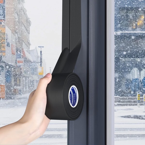ZOMPAGO Cloth Duct Window Seal Tape for Winter, 2.36in x 33FT, Weather Stripping Sealing Insulation Tape for Windows and Door, Strong Adhesion Draft Blocker Black