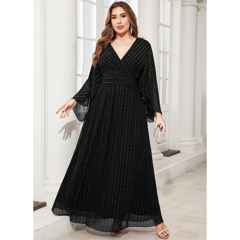 - Elegant & Graceful: The plus size party dress with flowing handkerchief sleeves adds a touch of feminine charm, while its graceful maxi silhouette effortlessly creates an elegant atmosphere.