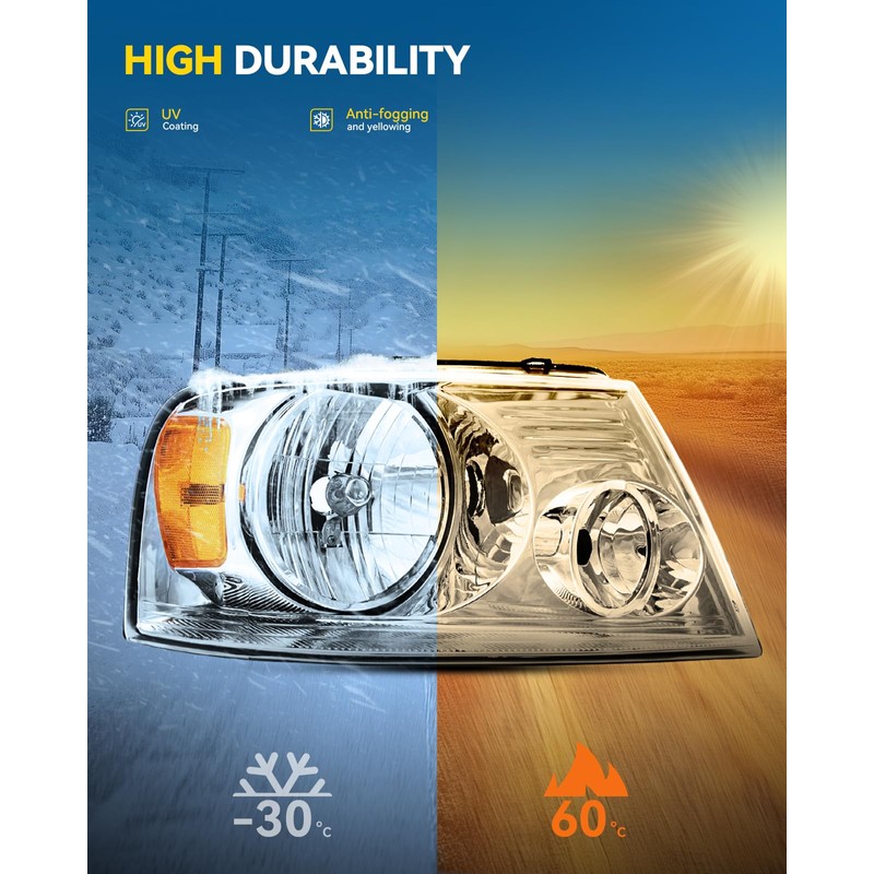 ZonCar Headlight Assembly, Chrome Housing with Amber Reflector & Clear Lens, Compatible with 2004-2008 F150, 2006 Mark LT, OE Style Replacement