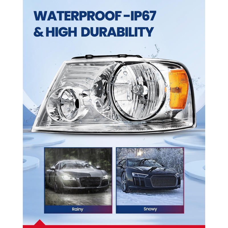 - 【WIDE COMPATIBILITY】Headlights Assembly Replacement for 2004-2008 F150, 2006 Mark LT. OE: "1x Left Headlight Assembly (FO2502201,20645800,K301122LAS), 1x Right Headlight Assembly (FO2503201,20645700,K301122RAS)", H13 High/Low, 3157NA Signal/Parking. Bulbs not included