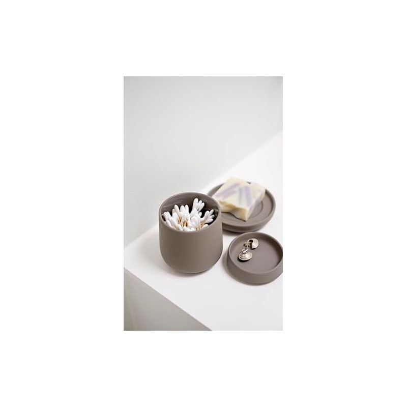 - The small ceramic jar with lid is pretty to look at and a very practical accessory in the bathroom.