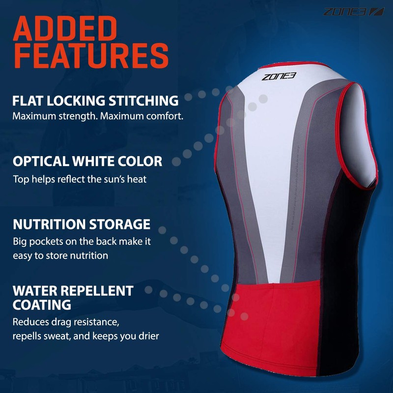 ZONE3 Men's Lava Long Distance Tri Top - Sleeveless (Black/White/Red, Small)