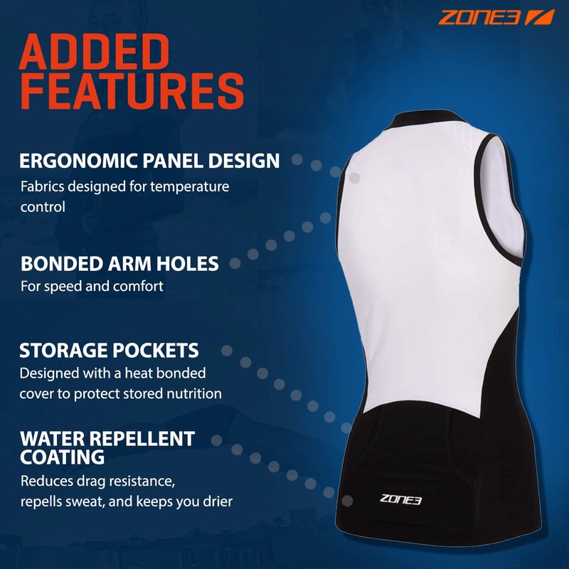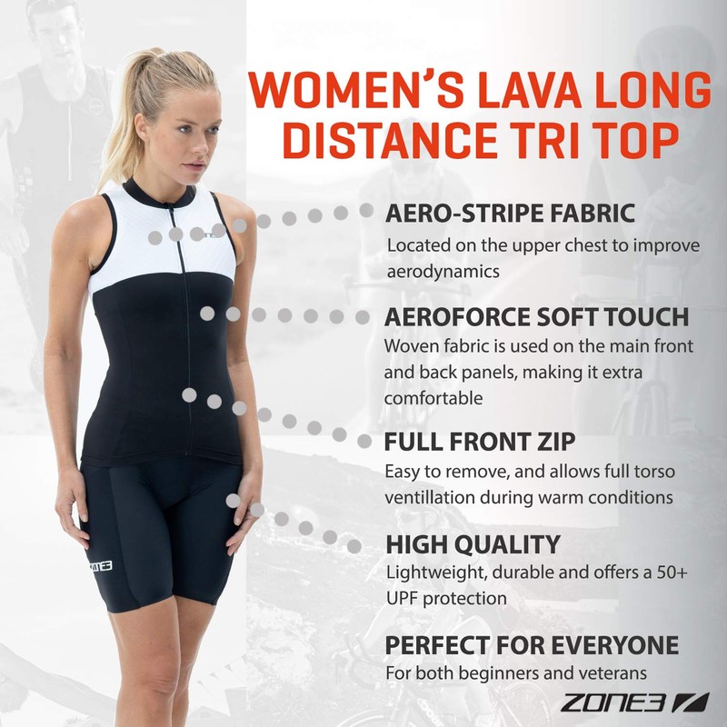 ZONE3 Women's Lava Long Distance Tri Top - Sleeveless (Black/White, Medium)