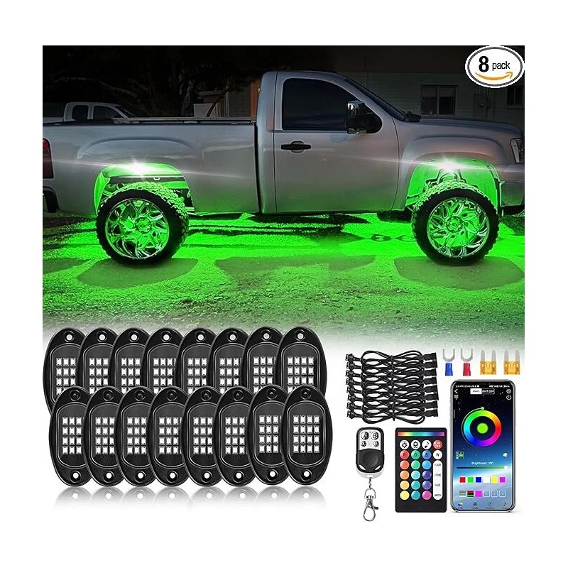 ZONECONA RGB LED Rock Lights Kit 16 Pods Underglow Neon Multi Color Bluetooth & Remote