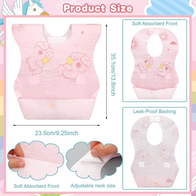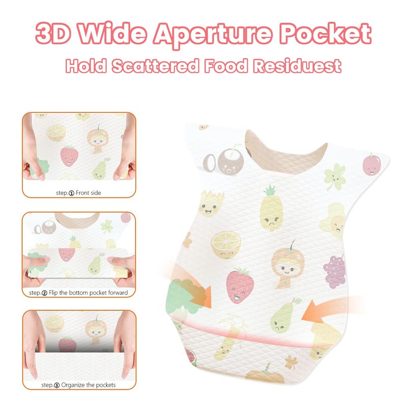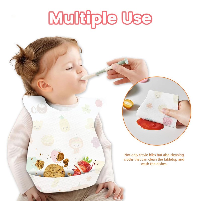 - [Feeding Helper】Practical disposable baby bib is helpful for babies and children who catch spills, crumbs or liquids while eating without getting their clothes dirty.