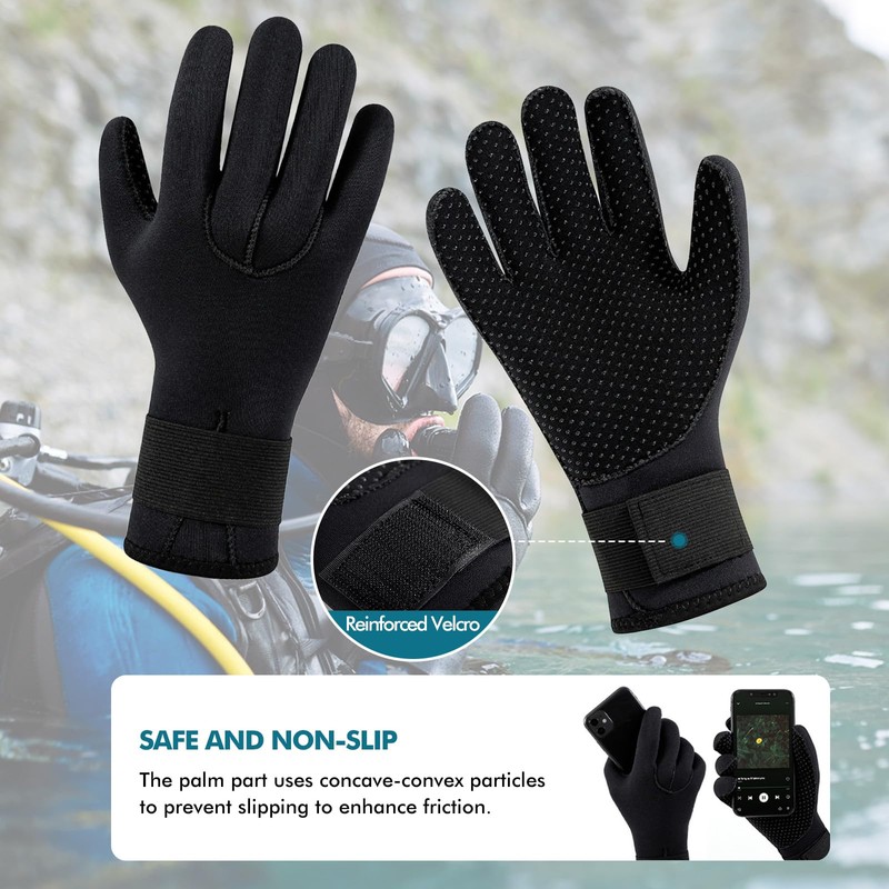 Featuring an elastic Velcro wrist strap, these gloves provide a snug fit while reducing water entry. The lightweight 3mm neoprene allows natural hand movement, ideal for extended use.