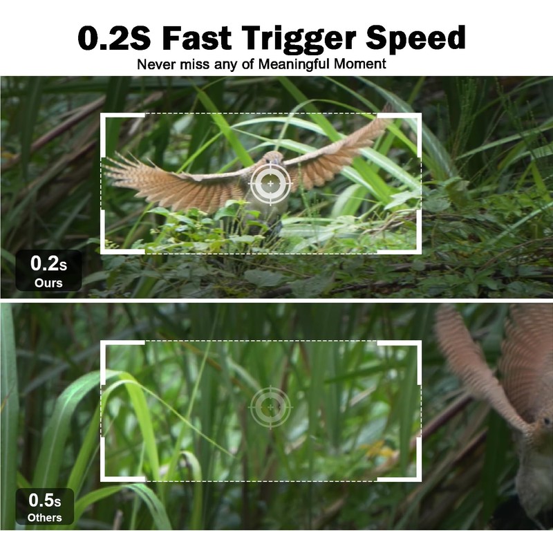 - 【Fast 0.2s Trigger Speed】Zonkasion cellular trail camera boasts an adjustable PIR sensor and a lightning-fast trigger speed of 0.2 seconds, ensuring accurate detection and swift capture of the essence in both photos and videos. Timely alerts are provided through the Ucon app. The photos and videos will be stored on an memory card (up to 128G, not included) or cloud storage (30-day trial for new users, after which a subscription will be required). User can download or playback on phone.