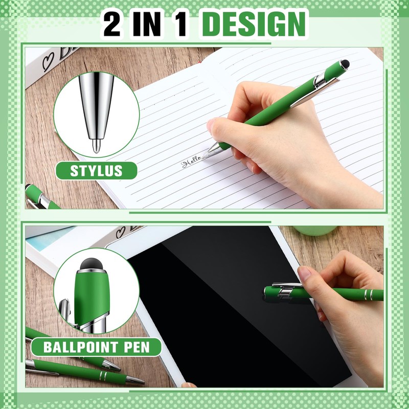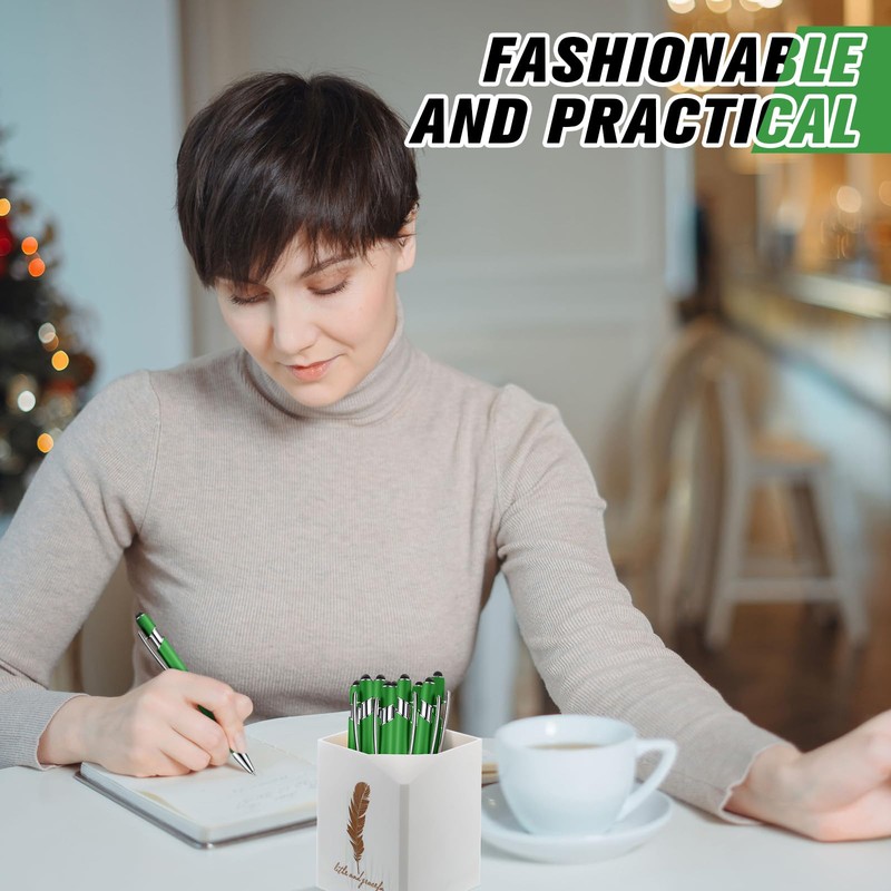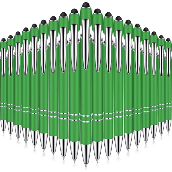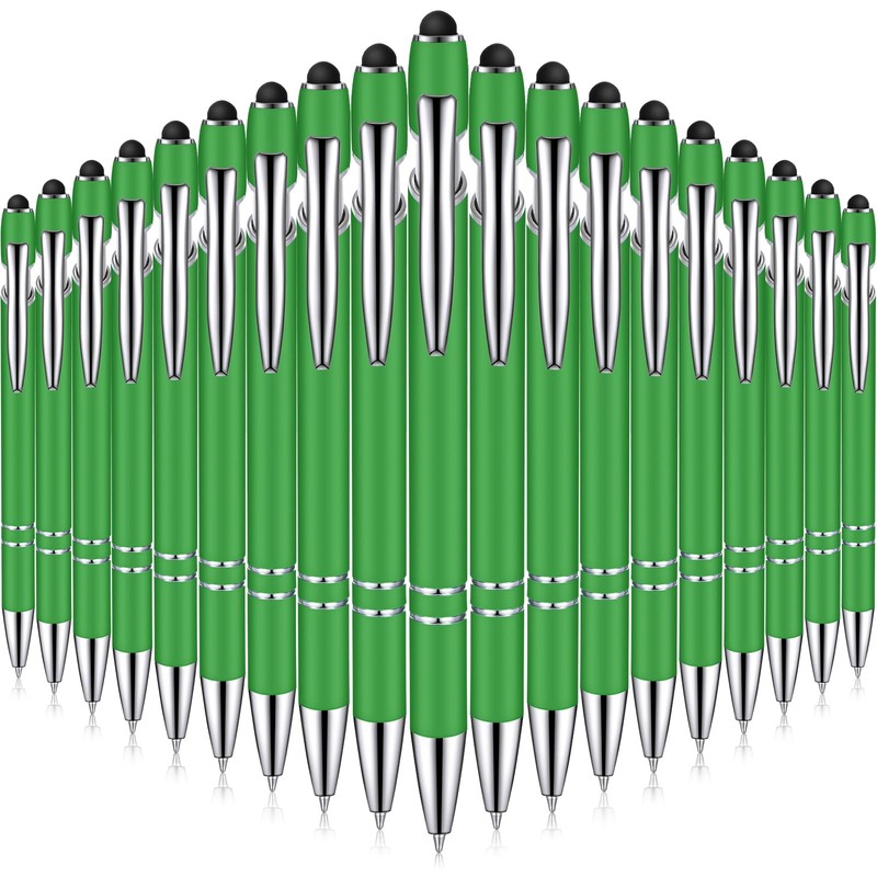 Zonon 38 Pieces Rubberized Ballpoint Pen with Stylus Tip Stylish Metal Pen Capacitive Styli with Soft Rubberized Grip, Black Ink for Most Devices(Green)