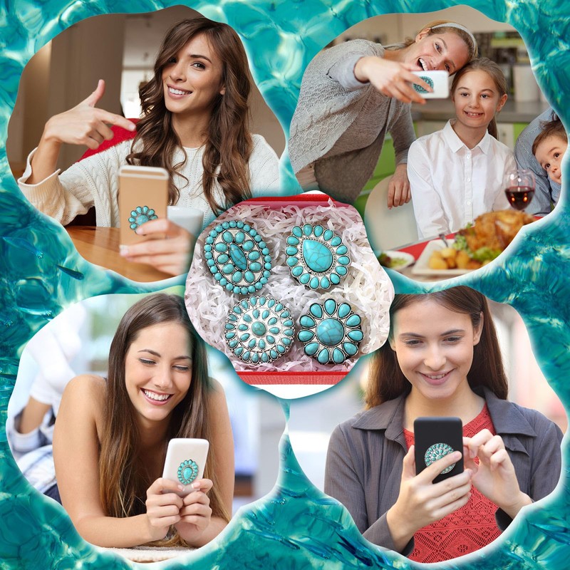 - 4 Pieces Turquoise Phone Grip: vibrant with a beautifully aesthetic green rock, this turquoise phone grip brings a touch of western elegance to your phone; It is not just a phone accessory but a stylish extension of your personality; Its diameter of 1.5 inches ensures it fits comfortably on your phone without being too obtrusive