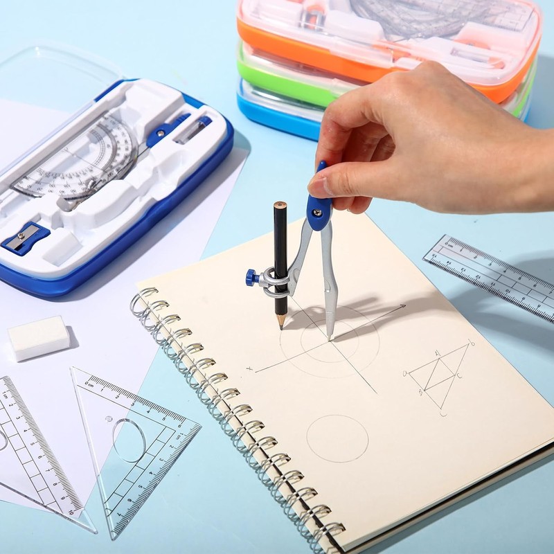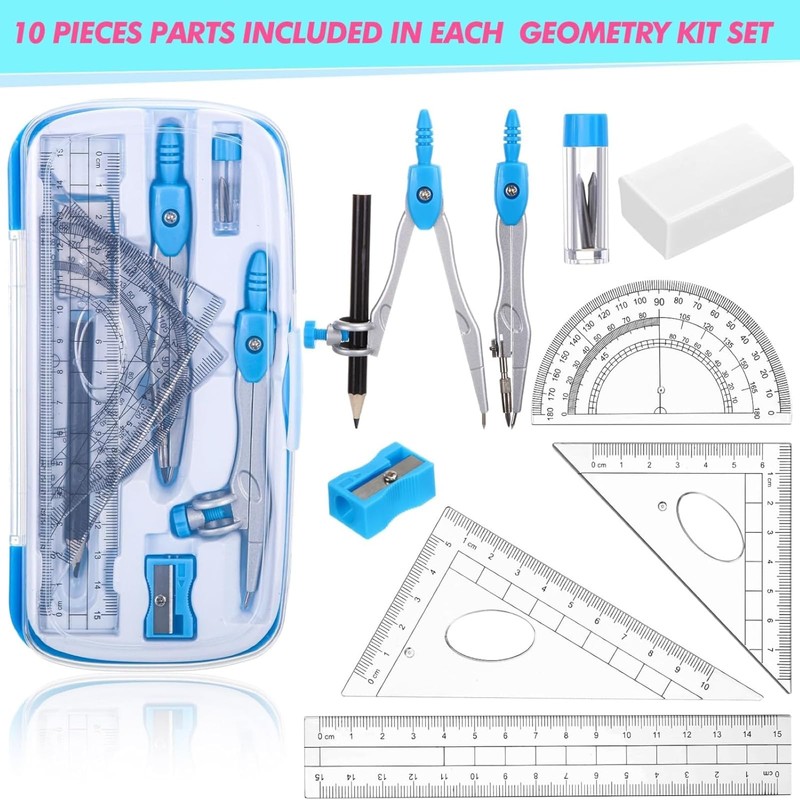 - Compact and Portable: the geometry kit is enclosed in a shatterproof storage box to keep your tools safe and organized; The compact sizing of the box, complete with a hook on its top for hanging, ensures that it doesn't occupy unnecessary space and can be effortlessly carried around, making it convenient for both students and teachers