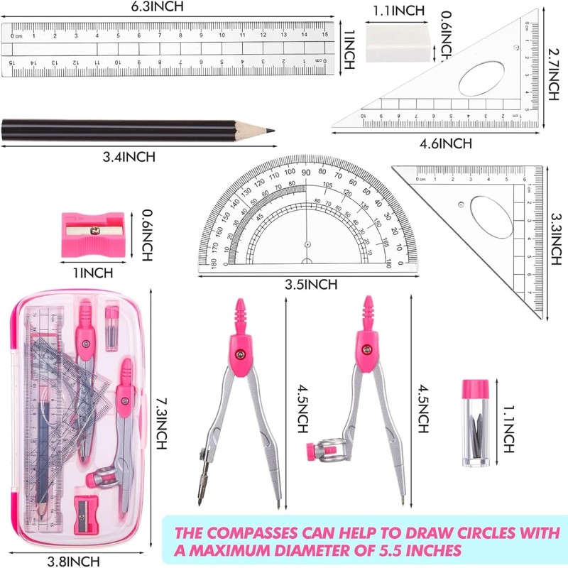 - Ideal Gift Choice: our math compass geometry set is a wonderful gift for teachers and students; It plays an instrumental role in math classes by enhancing the students' study abilities and creating beautiful illustrations; It can also serve as a reward for students with academic progress