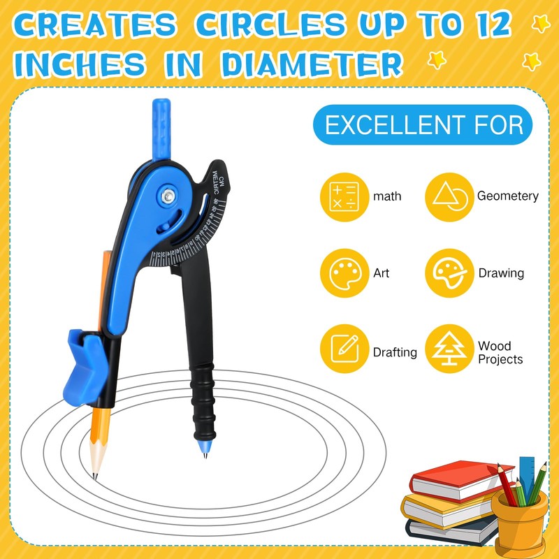 - Dual Scale Design: features both inch and centimeter scales, offering precise, convenient measurements; These geometric compass is ideal for students needing to create circles, arcs, and angles for geometric shapes and calculations, an essential tool for any math classroom