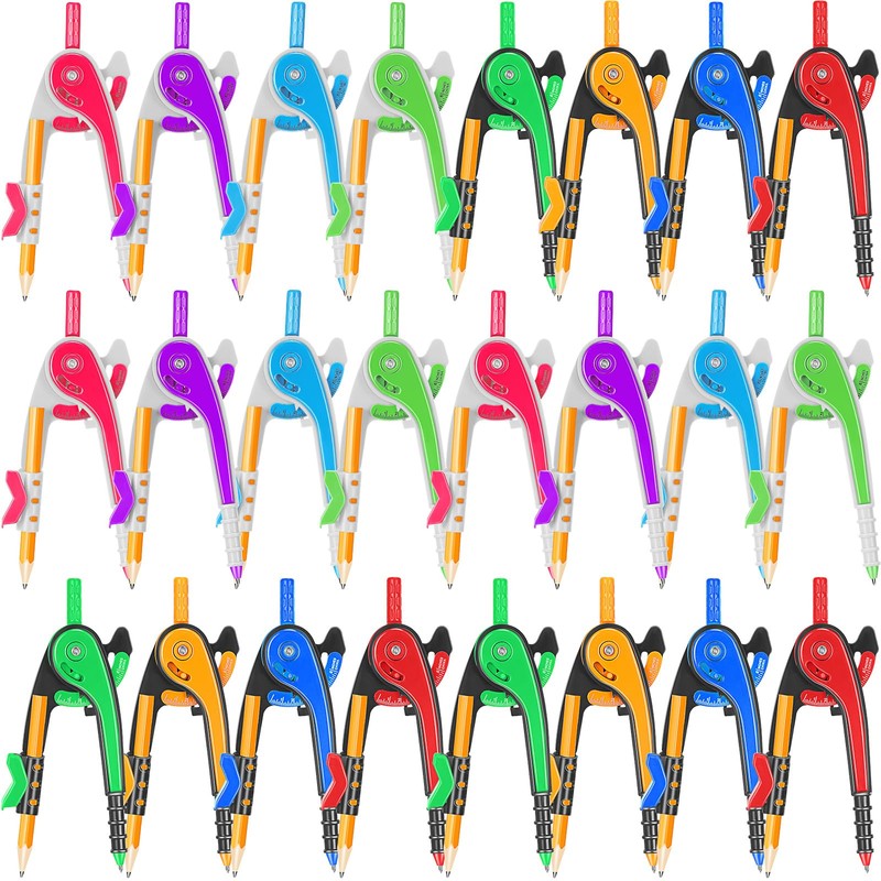 - Pack Includes: package includes 30 drafting compasses in 8 vibrant colors; Each compass comes with a detachable pencil; Ideal for school districts and teachers in need of multiple compasses for students