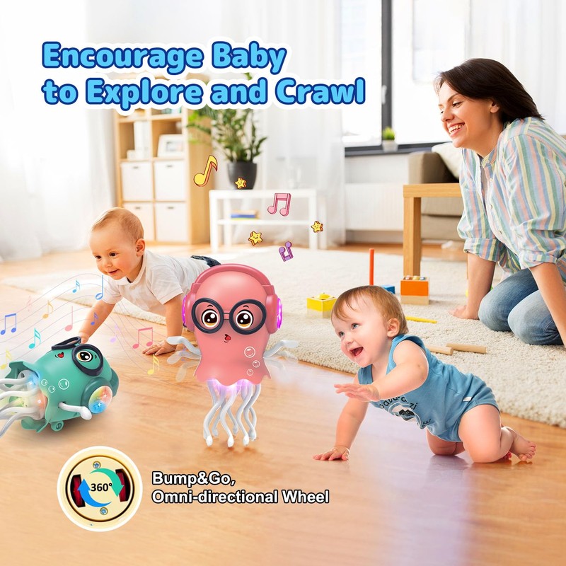 - 【Interactive Twist Dancing Crawling Funuy jellyfish for kids】 This dancing jellyfish wiggles, spinner, and crawls with colorful lights and music, encouraging babies to walk and crawl. Perfect for active play and early sensory development, it's a great choice for Toddlers toys 36 months, Toddlers walkers, and toys for 3+ year old boy girl