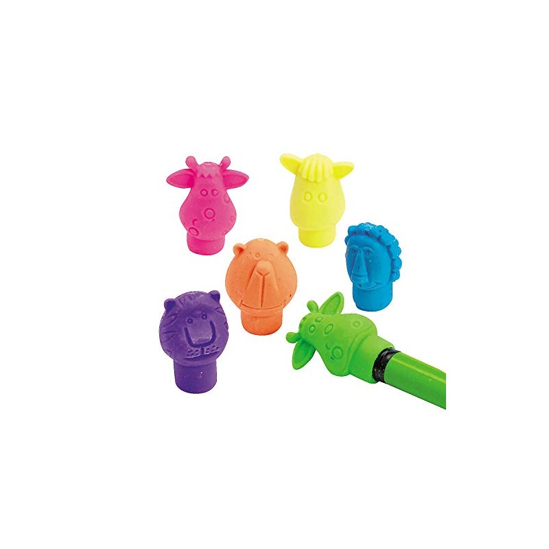 • Neon Zoo Animal Pencil Top Erasers. Assorted styles. 1"