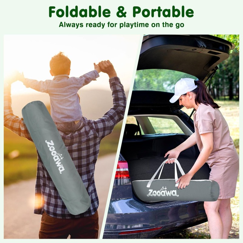 Zooawa Pop Up Playpen for Baby, Portable Playpen for Babies and Toddlers with Removable Sun-Shades& 2 Side UV Covers, Lightweight Outdoor Baby Play Pen for Beach Home with Travel Bag,Light Gray