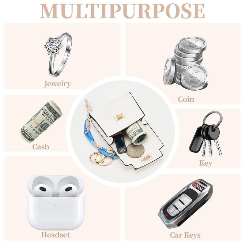 • Multiple Uses:This small keychain pouch purse can be used to hold cash, coins, jewelry, keys, headset,or any small items you want to take out. You can use this coin purse as a portable mini headset bag, keychain wallet or bag decoration. You no longer need to carry a heavy wallet, it will be your best choice for going out, partying and traveling.