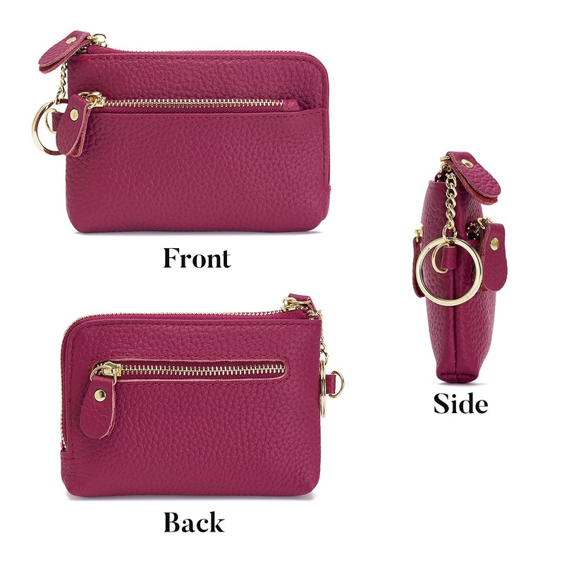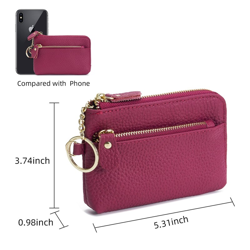 ZOOEASS Women Leather Coin Purse,Large Opening For Easy Access,With Wrist Strap(Rose)