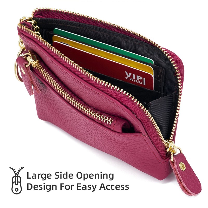 - ★Unique design: Large opening For easy access,with wrist strap. High quality gold metal zippers smooth, sturdy and fashion.Build-in key chain/ring, won't lose your keys as they are attached to the wallet.